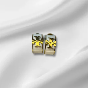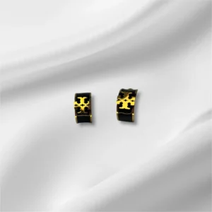 Add a touch of designer-inspired elegance to your jewelry collection with our Tory Burch Inspired Gold Stainless Steel Hoop Earrings. These chic aritos are available in two versatile color options: sleek black or classic white enamel, both beautifully paired with a luxurious gold-plated finish. These earrings are the perfect accessory to elevate any outfit, whether you’re dressing up or down.