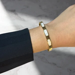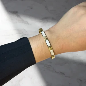 Q: Is the Luxury Natural Shell Bangle suitable for everyday wear? A: Yes, this bracelet is crafted from durable stainless steel, making it perfect for everyday wear while maintaining its elegant appearance.